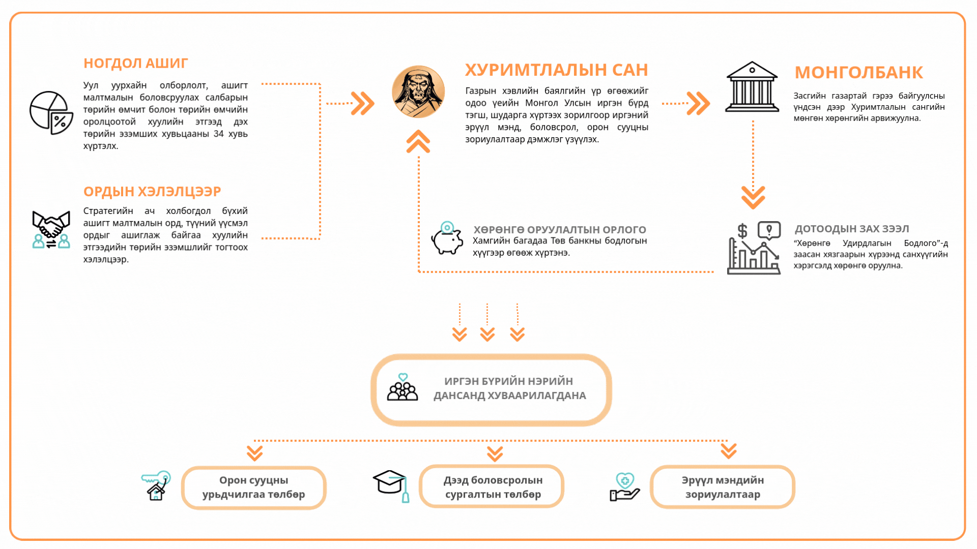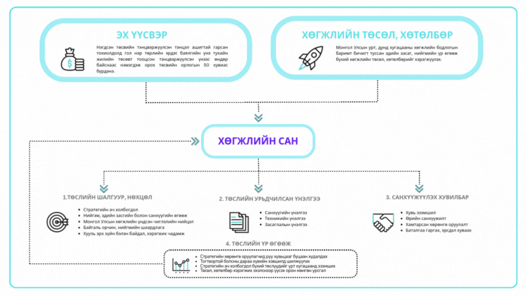 Хөгжлийн сан нь Монгол Улсын урт болон дунд хугацааны хөгжлийн бодлогын баримт бичгүүдэд туссан, эдийн засаг, нийгмийн стратегийн ач холбогдолтой, өндөр өгөөжтэй төсөл, хөтөлбөрүүдийг хэрэгжүүлэхэд чиглэж, хөгжлийн бодлогыг тогтвортой санхүүжүүлэх, улсын урт хугацааны чадамжийг нэмэгдүүлэх бодлогын хэрэгсэл болохоор төлөвлөгдсөн.