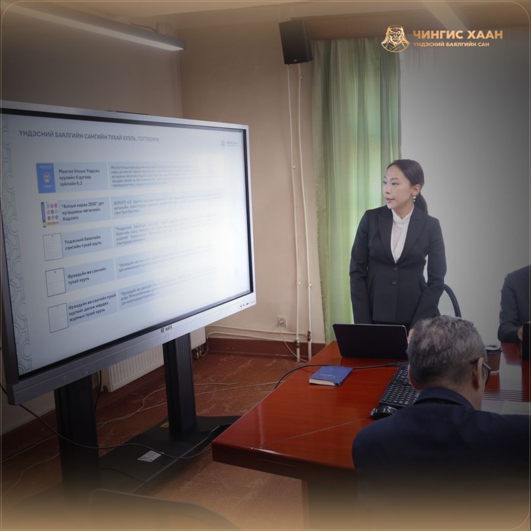 Үндэсний баялгийн сан, олборлох үйлдвэрлэлийн ил тод байдлыг хангах асуудлаар санал, дүгнэлт боловсруулах Ажлын хэсгийн гишүүдэд “Үндэсний баялгийн сан”-гийн өнөөгийн нөхцөл байдал, цаашид авах арга хэмжээ, үйл ажиллагааны төлөвлөгөөг танилцууллаа.